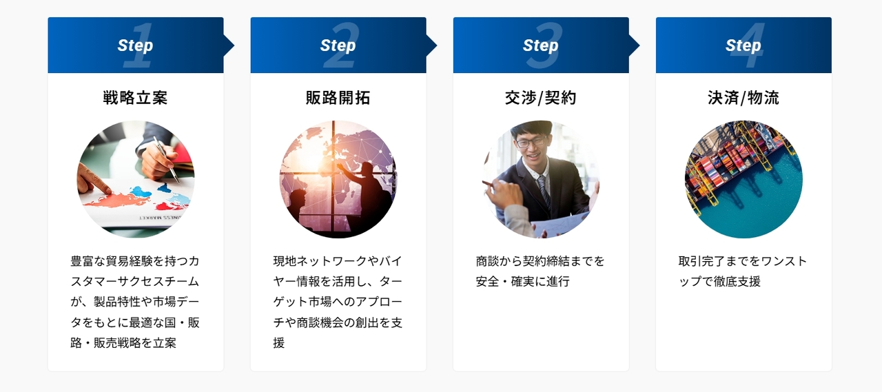 →わかりやすいパッケージで、戦略立案から営業代行、貿易実務、商社機能までカバー。